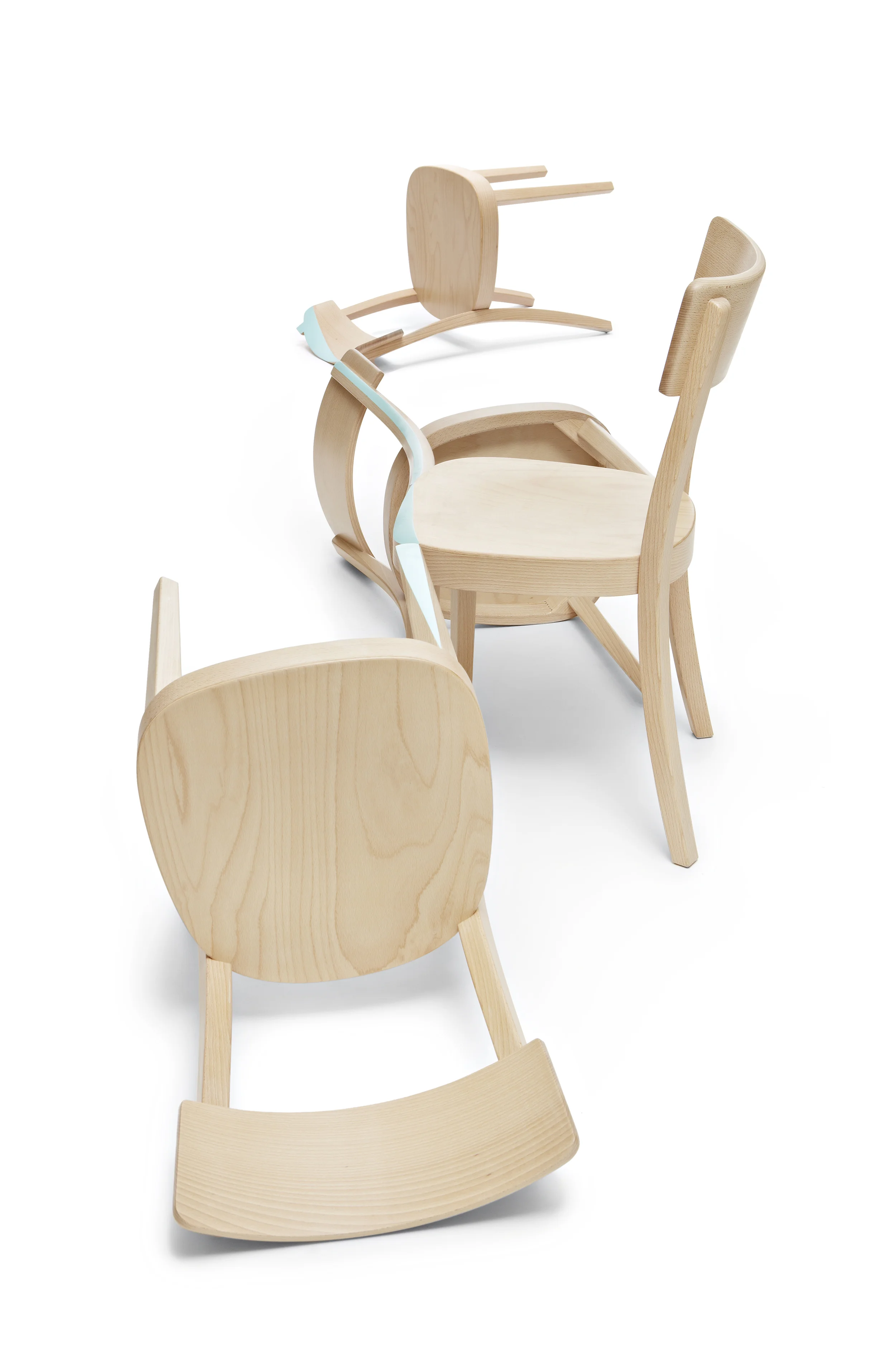 Verschiedene Designer und Künstler werden damit beauftragt, jeweils vier der klassischen Horgenglarus Bistrostühle auf eigene Weise zu bearbeiten.